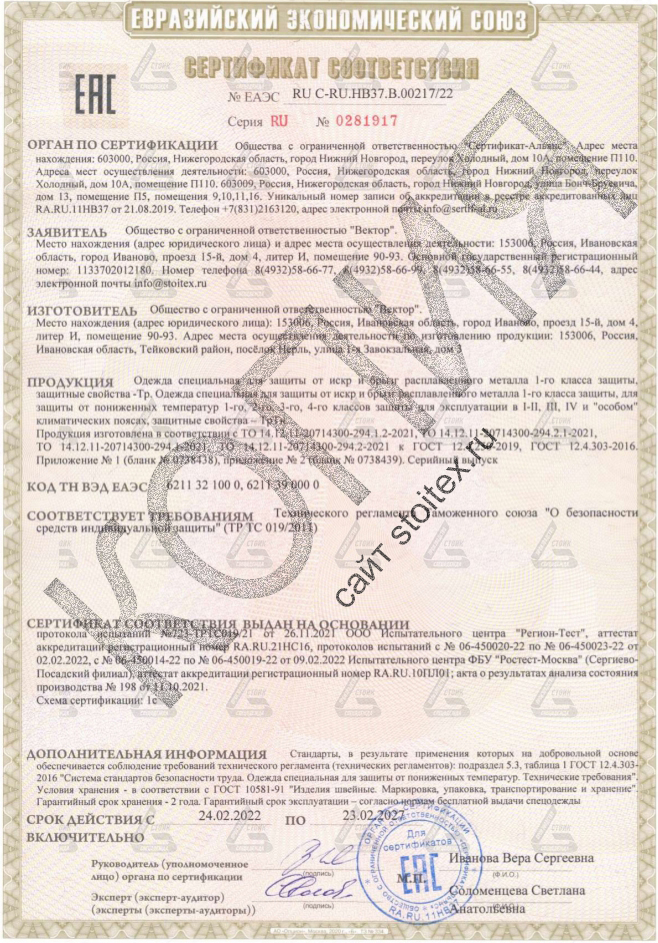 Сертификат соответствия №ЕАЭС 0281917